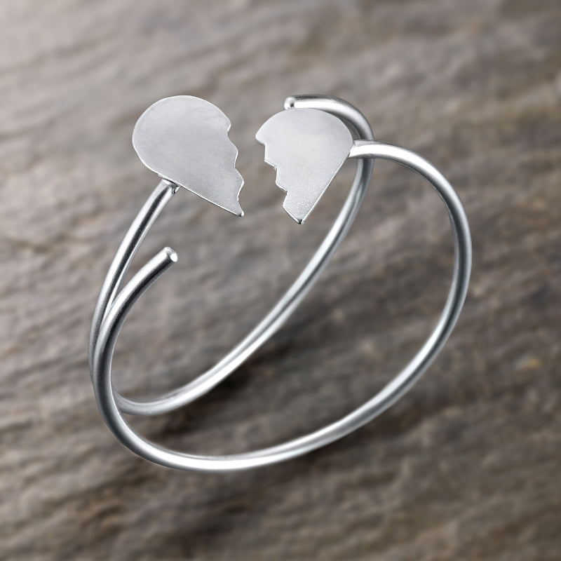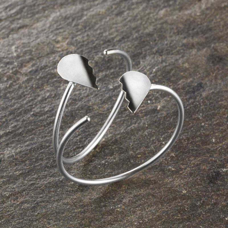 Il bracciale Corazon Partio racconta la forza che nasce dalle crepe. Due metà di cuore, scolpite in argento 925, si affrontano e si cercano all’estremità di un filo sottile che le unisce — come un legame invisibile tra fragilità e rinascita.